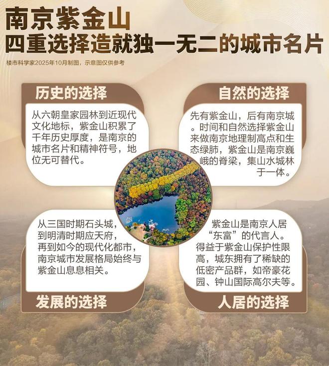 从明故宫,到半山园,再到美龄宫,历史书籍上记录的大人物,生活半径并未脱离紫金山;从帝豪花园,到钟山国际高尔夫,从梅花山庄,到银城东苑,再到五矿晏山居,现代人居的“东富”,依然由紫金山定义。