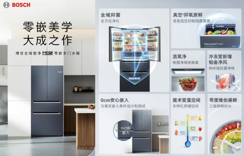 对于那些对生活品质有着极高追求的消费者而言,博世全域智净M8S零嵌多门冰箱无疑是理想之选。这款冰箱不仅代表了博世在嵌入式冰箱领域的顶尖技术成就,更将德式匠心精神融入每一处细节。其采用的全新变轨铰链技术,实现了0cm安心零嵌,微边距设计让冰箱完美融入橱柜,大开合角度则极大提升了使用便捷性。同时,优化的整机抗冷凝水系统有效防止了橱柜霉变,保护了家居环境的健康。